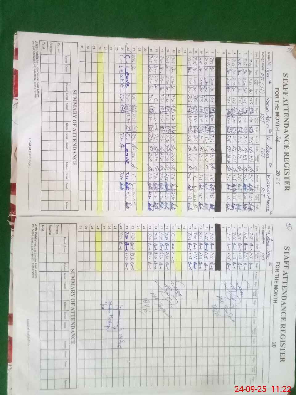 | CNIC | Full Name | Designation | R/C | Absence During Last Calender Month |