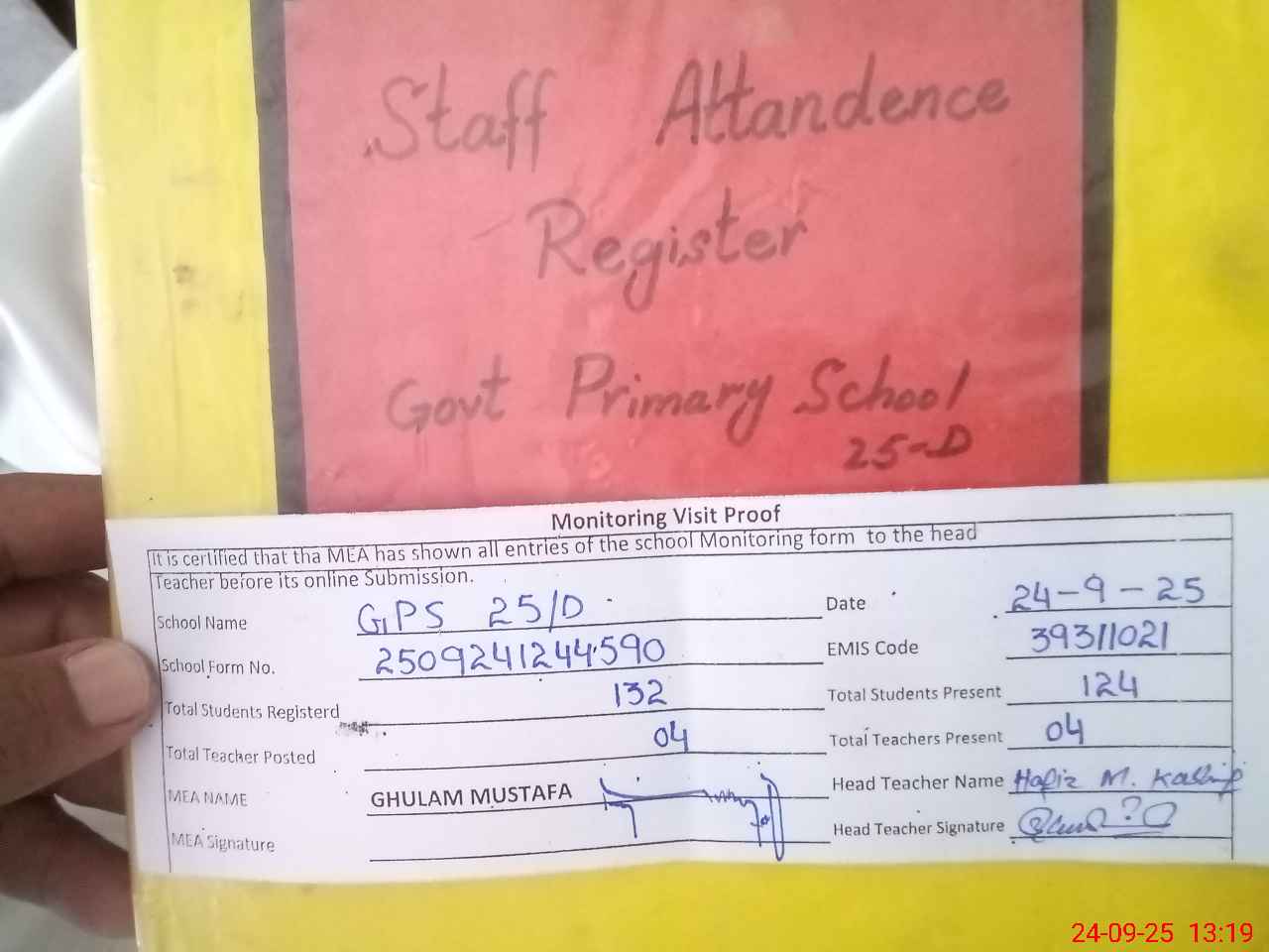 | EMIS Code: 39311021 | Name of School: GPS CHAK NO. 25/D | |||