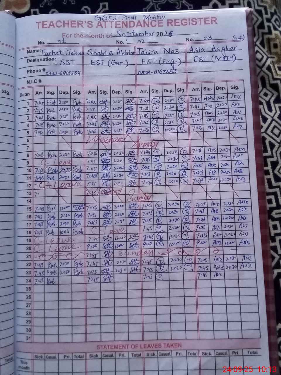 | Name: SY**** FA**** JA**** Designation: (School Headmaster's/Headmistress's) SST GENERAL Phone/Cell Number: 03**** |