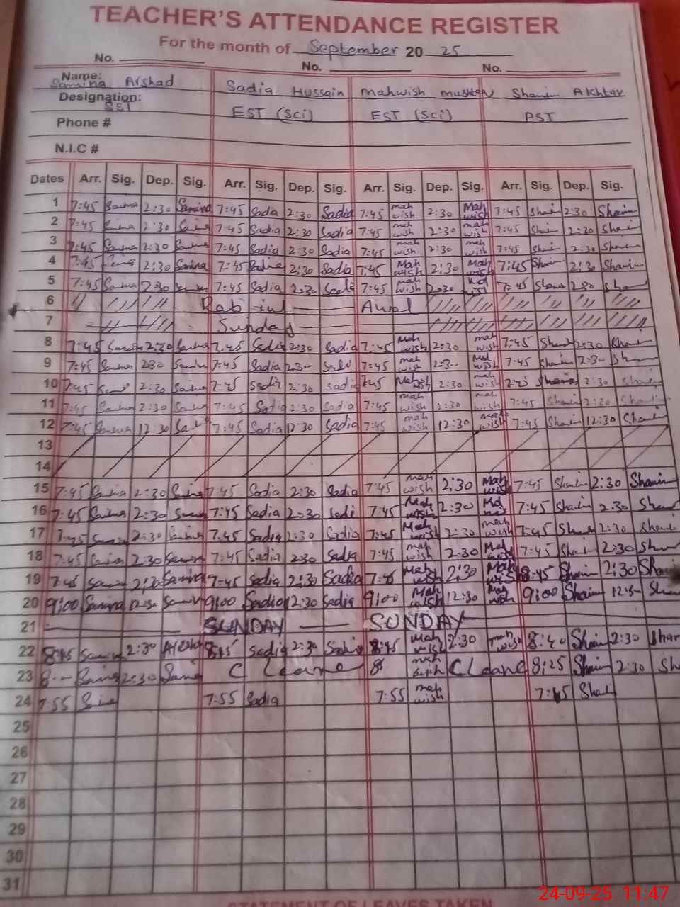| 35**** | Sa**** Bi**** | PST | Regular | 0 | 0 | 0 | 0 | 0 | 0 | 0 | 0 | 0 | Maternity |