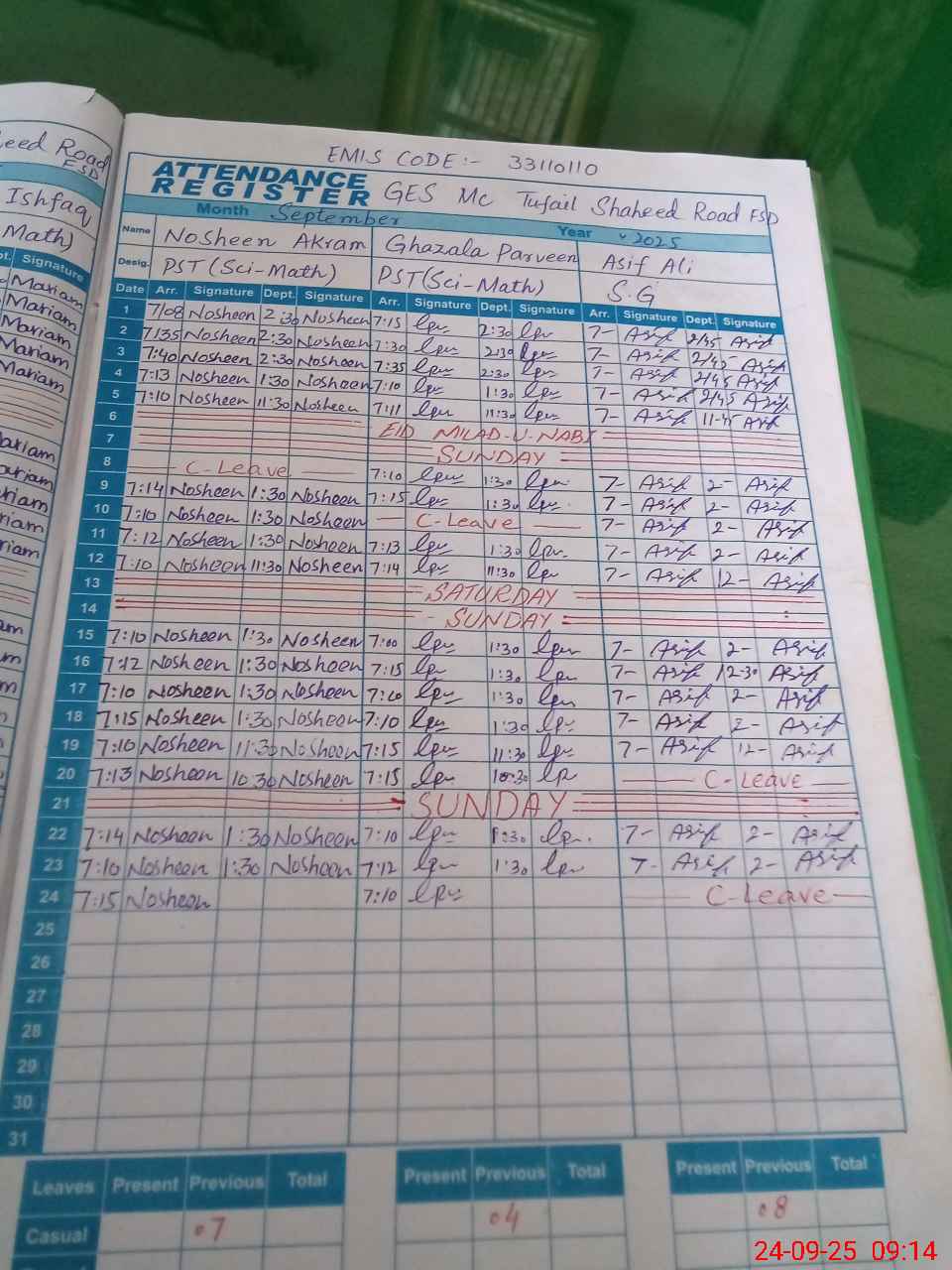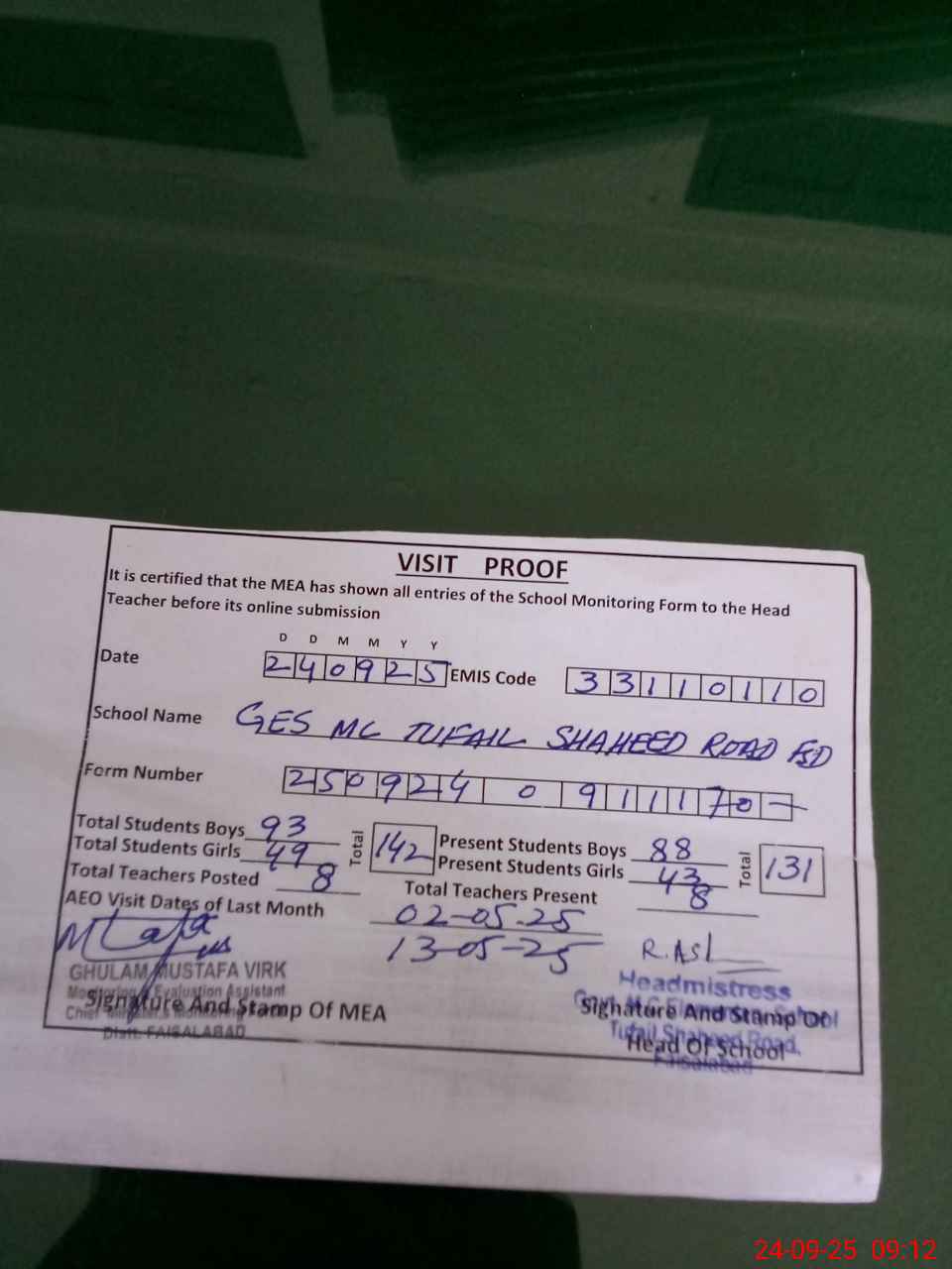 | EMIS Code: 33110110 | Name of School: GES MC TUFAIL SHAHEED ROAD FSD | |||