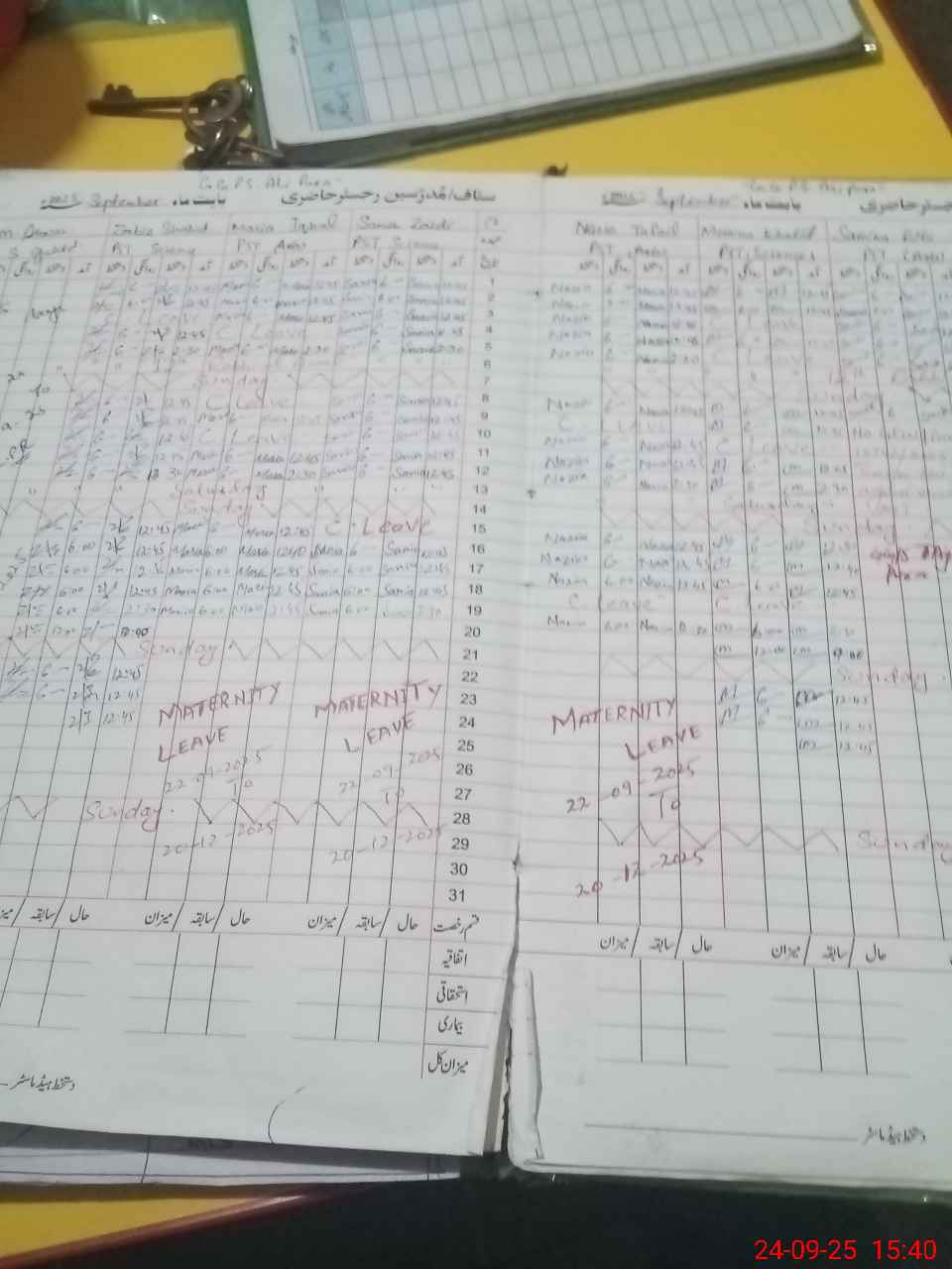 | Leave | Duty | Absent | Maternity | Medical | Ex- Pak |