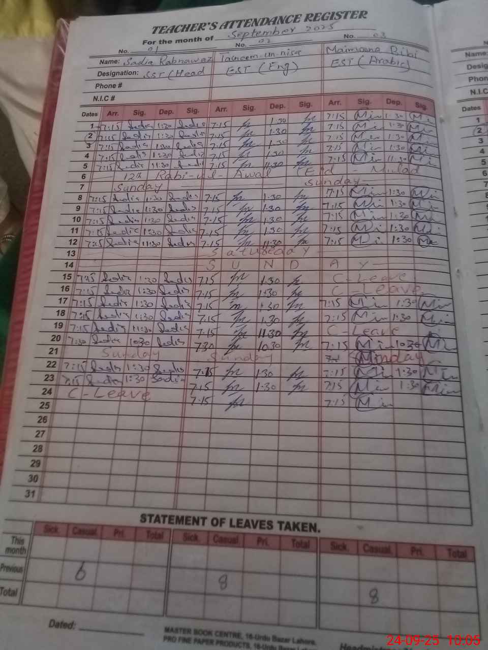 | Leave | Duty | Absent | Maternity | Medical | Ex- Pak |