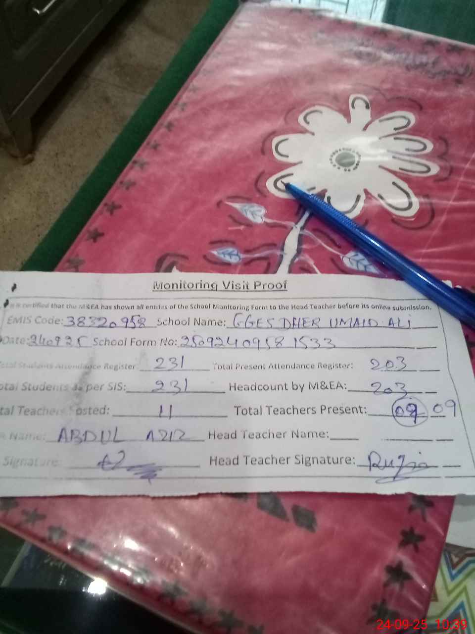 | EMIS Code: 38320958 | Name of School: GGES DHER UMID ALI SHAH | |||