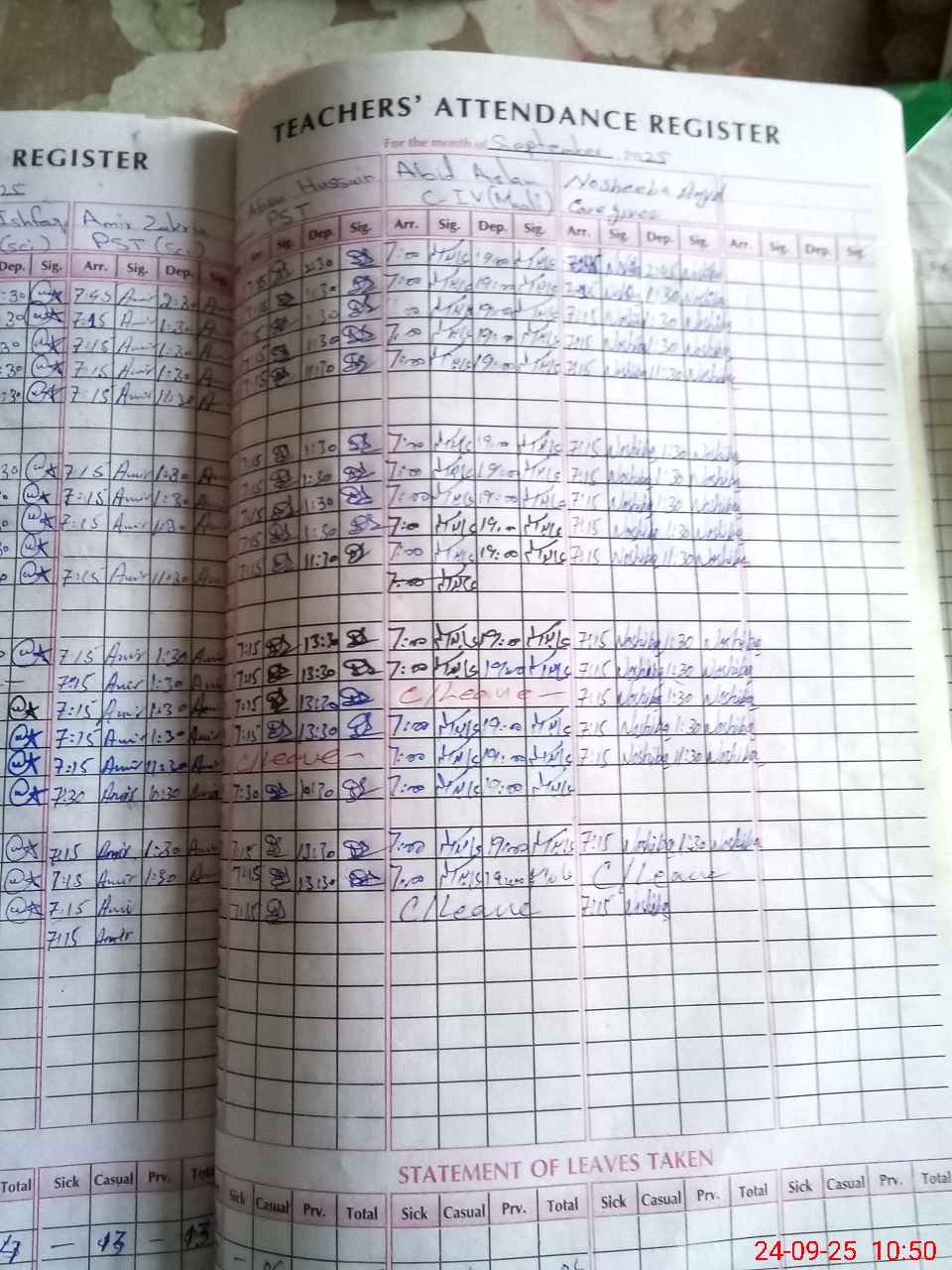 | Leave | Duty | Absent | Maternity | Medical | Ex- Pak |