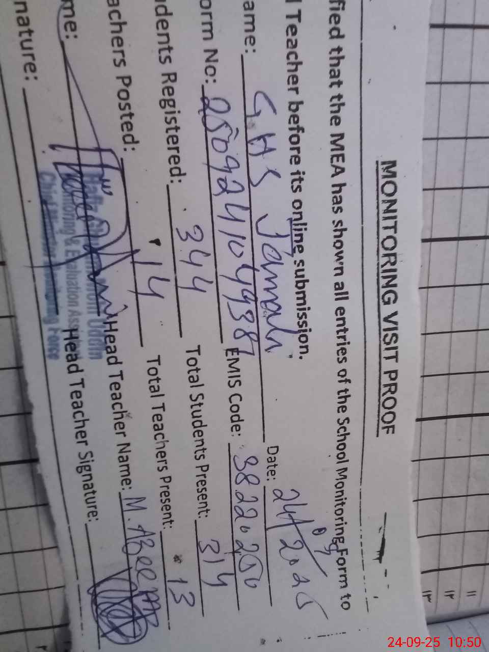| EMIS Code: 38220250 | Name of School: GHS JAMALI | |||