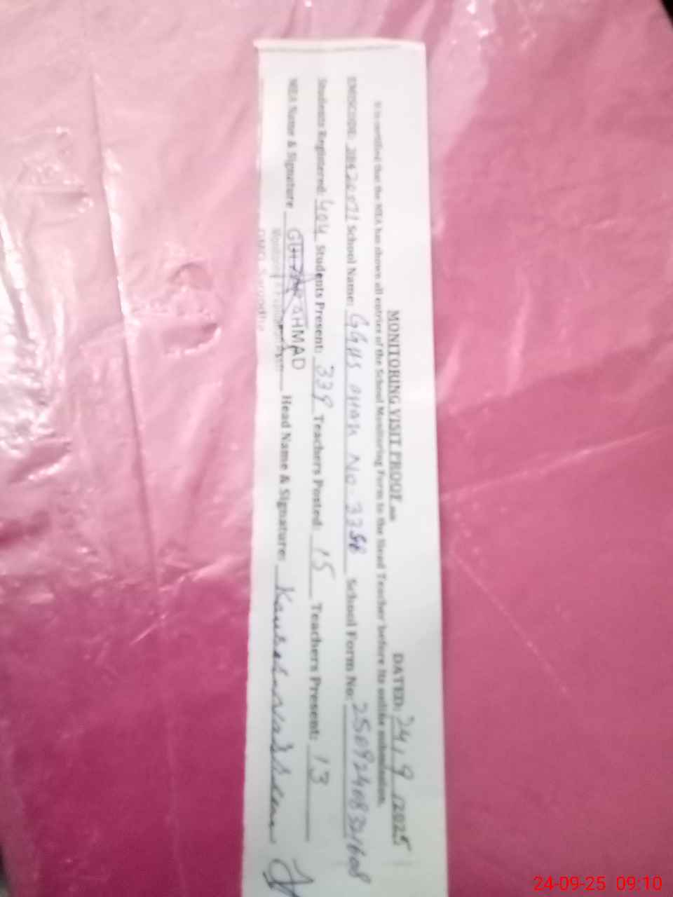 | Certified that this School was Inspected by the Undersigned MEA/DMO Today and the Information Stated Above is as Per Record. | |||||