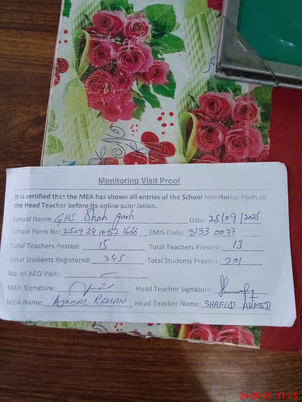 | EMIS Code: 31330077 | Name of School: GHS SHAH GARH | |||