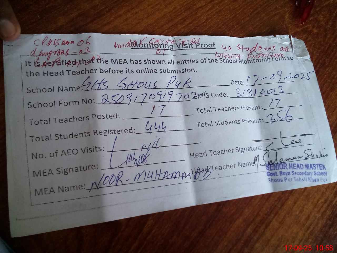 | EMIS Code: 31310013 | Name of School: GHS GHOUS PUR | |||