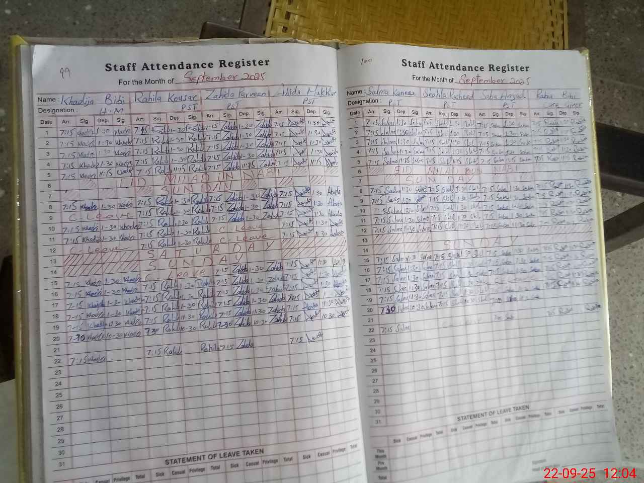 | Leave | Duty | Absent | Maternity | Medical | Ex- Pak |