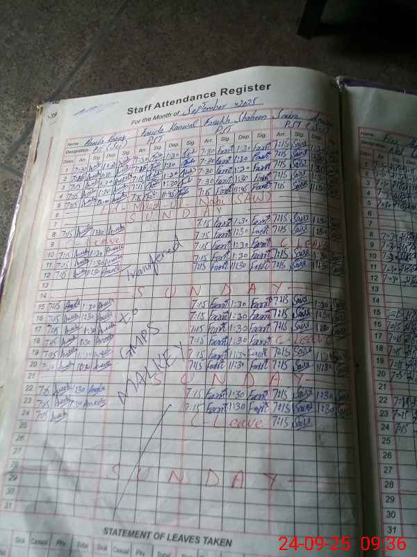 | CNIC | Full Name | Designation | R/C | Absence During Last Calender Month |