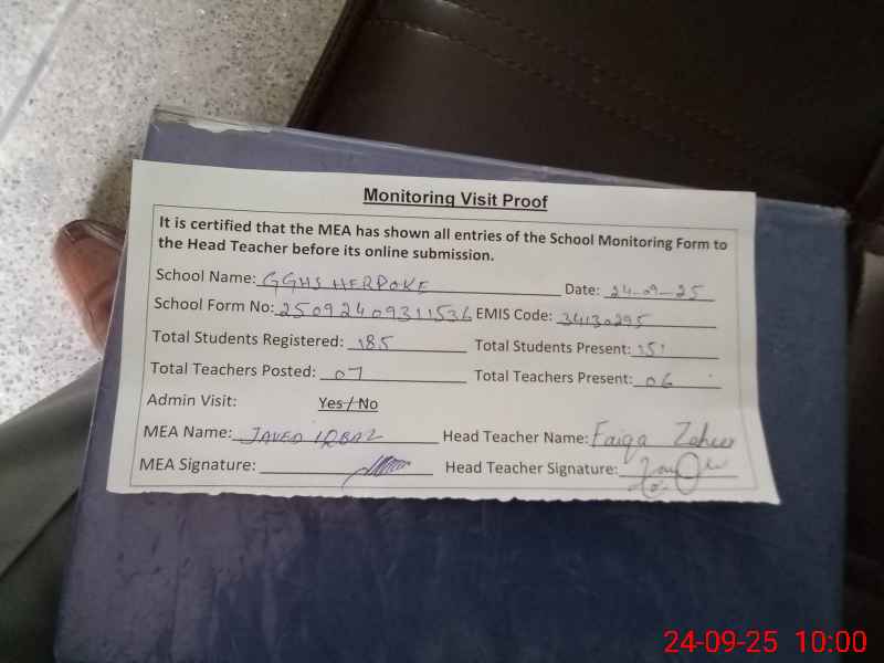 | Certified that this School was Inspected by the Undersigned MEA/DMO Today and the Information Stated Above is as Per Record. | |||||