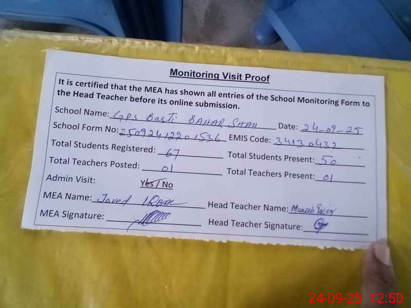 | EMIS Code: 34130432 | Name of School: GPS BASTI BAHAR SHAH | |||