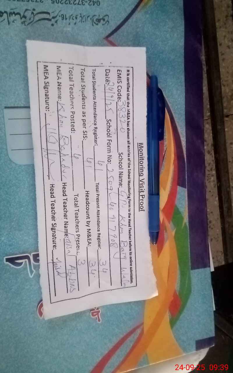 | EMIS Code: 38320205 | Name of School: GPS KHAN BAIG WALA | |||