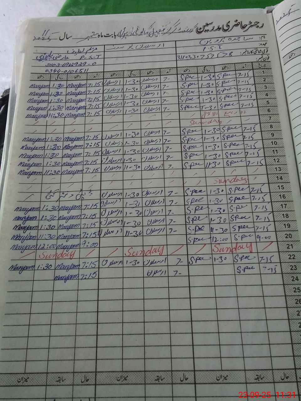 | Name: Ra**** Su**** Designation: (School Headmaster's/Headmistress's) EST Phone/Cell Number: 03**** |
