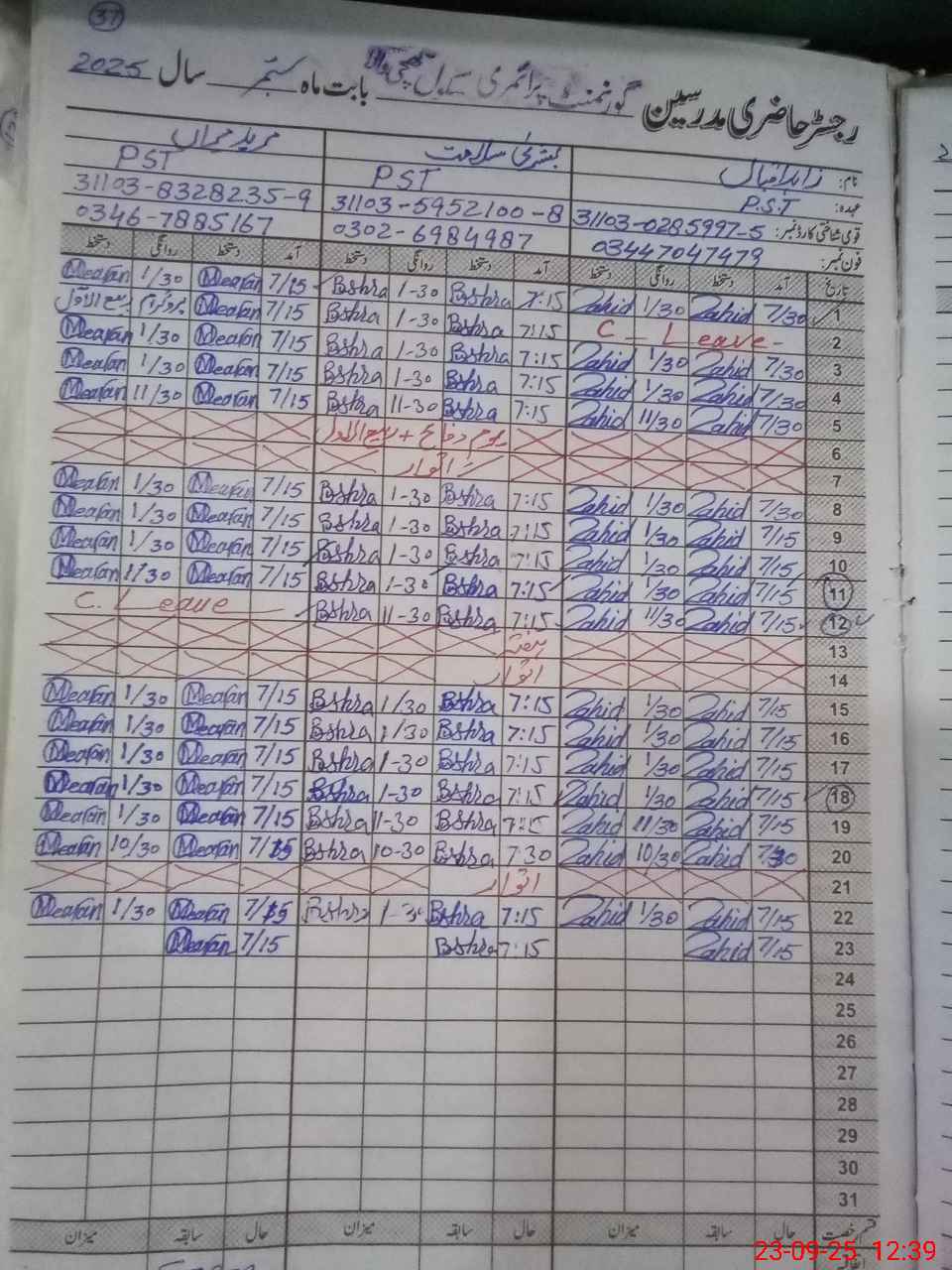 | CNIC | Full Name | Designation | R/C | Absence During Last Calender Month |