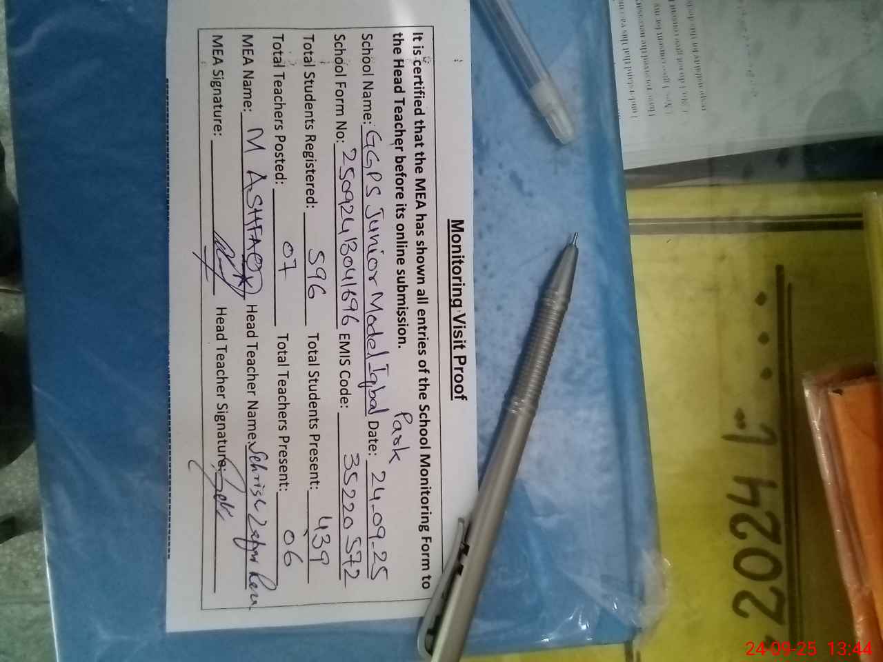 | EMIS Code: 35220572 | Name of School: GGPS JUNIOR MODEL IQBAL PARK | |||