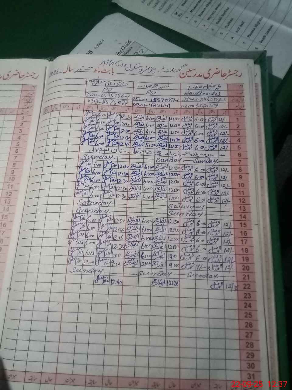 | Name: MU**** FA**** Designation: (School Headmaster's/Headmistress's) Head Master Phone/Cell Number: 03**** |