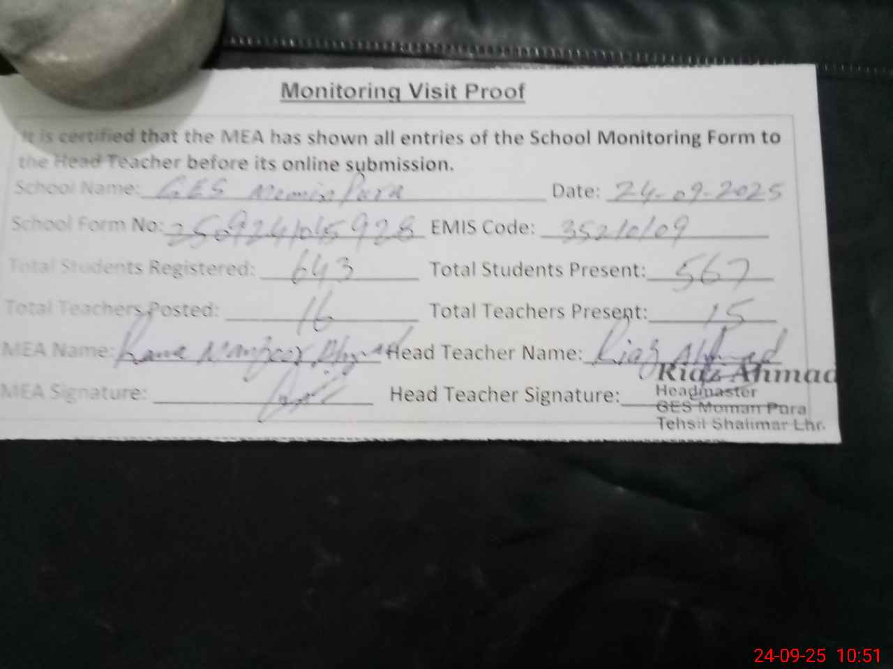 | EMIS Code: 35210109 | Name of School: GES MOMAN PURA GT ROAD, TEHSIL SHALIMAR | |||
