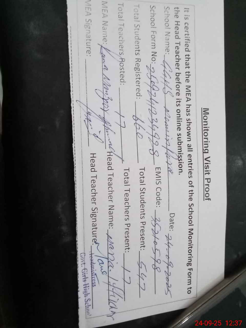 | EMIS Code: 35210598 | Name of School: GGHS MOMAN PURA(Newly upgraded) | |||