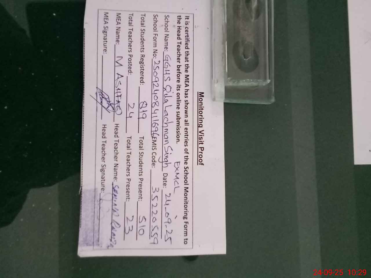 | EMIS Code: 35220559 | Name of School: GGHS QILA LACHMAN SINGH (EX-MCL) | |||
