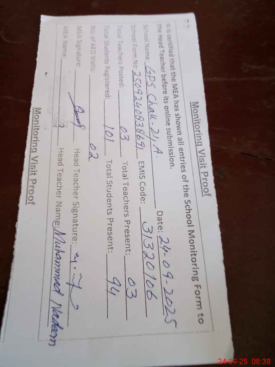 | EMIS Code: 31320106 | Name of School: GPS CHAK 21/A | |||