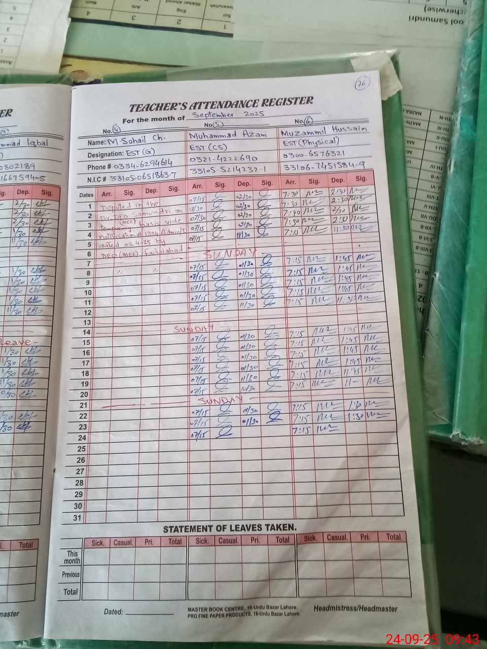 | Name: MU**** AM**** Designation: (School Headmaster's/Headmistress's) EST (GENERAL) Phone/Cell Number: 03**** |