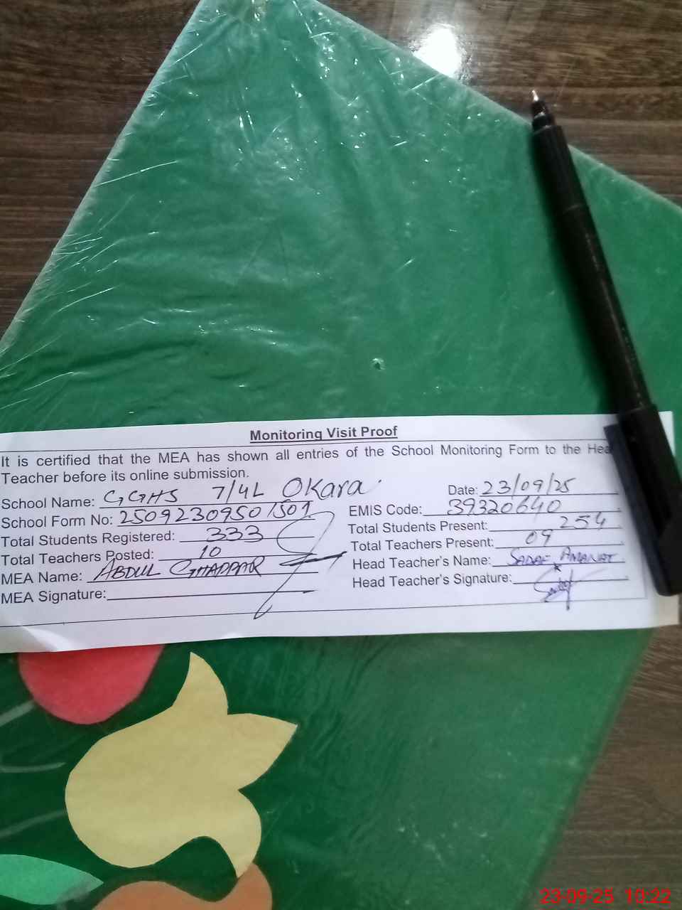 | EMIS Code: 39320640 | Name of School: GGHS CHAK NO. 7/4-L | |||