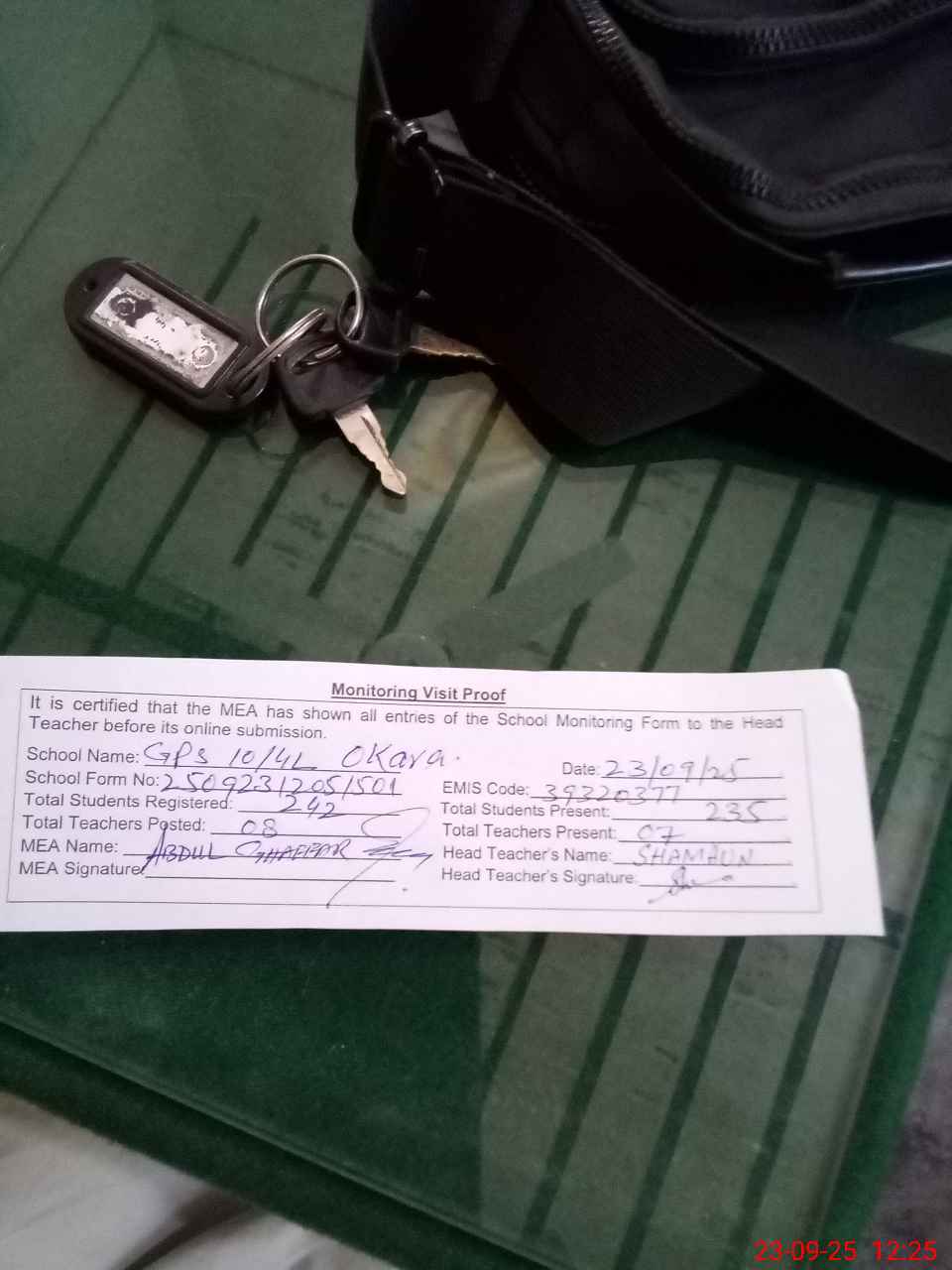 | Attendance Register | Head Teacher | MEA with School | Visit Proof |