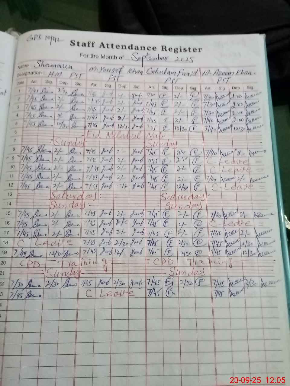 | Name: SH**** Designation: (School Headmaster's/Headmistress's) PST Phone/Cell Number: 03**** |
