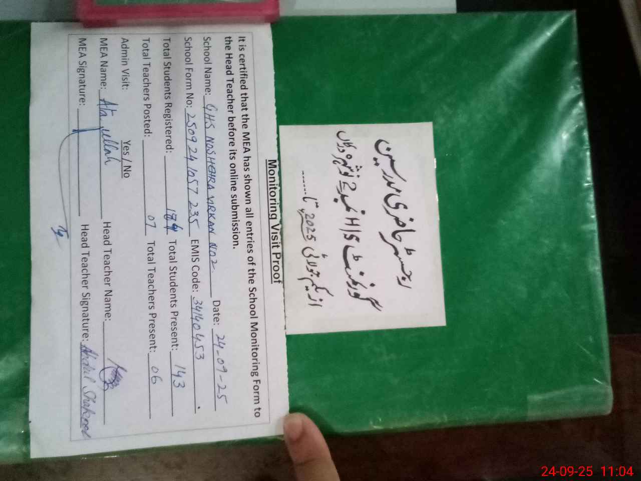 | EMIS Code: 34140453 | Name of School: GHS NOWSHERA VIRKAN NO.2 | |||