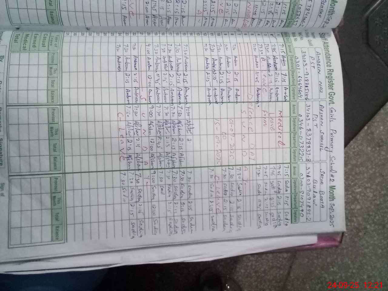 | Leave | Duty | Absent | Maternity | Medical | Ex- Pak |