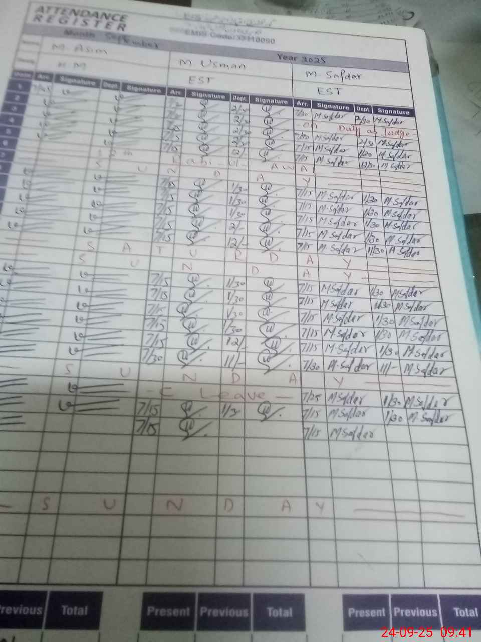 | CNIC | Full Name | Designation | R/C | Absence during last cal. month |