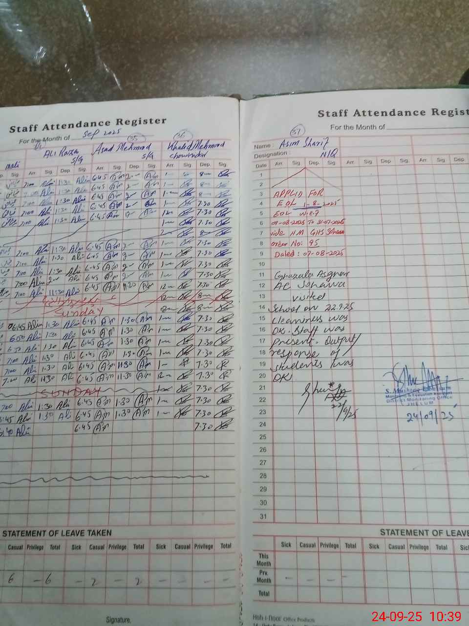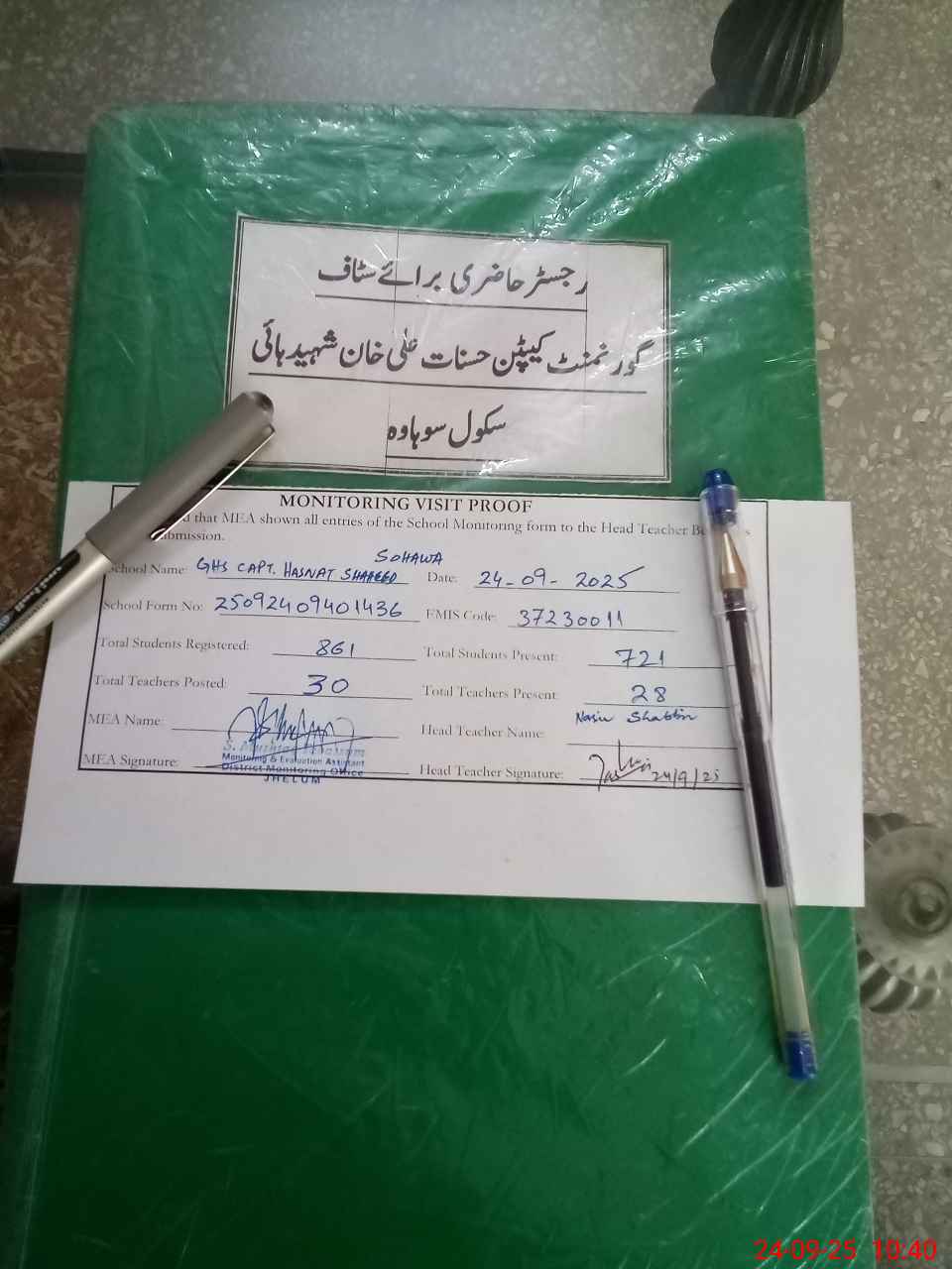 | Attendance Register | Head Teacher | MEA with School | Visit Proof |