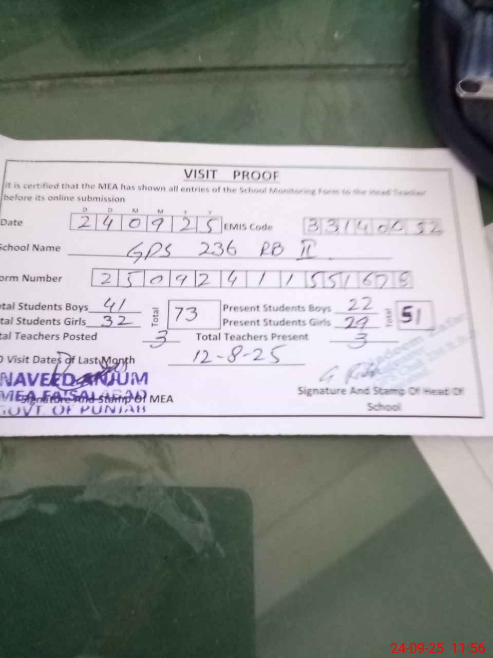 | EMIS Code: 33140052 | Name of School: GPS 236 RB II | |||
