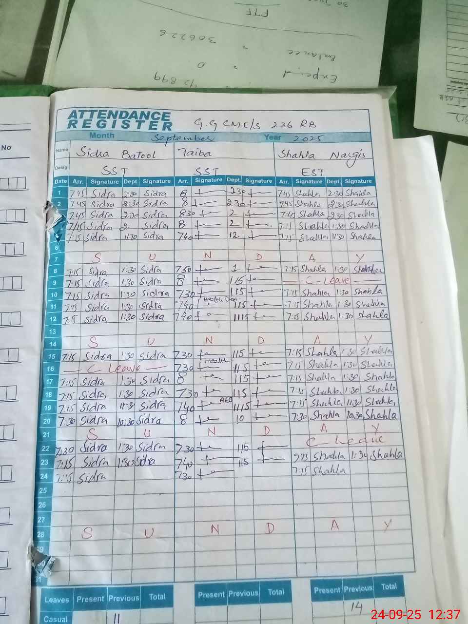 | 33**** | Sa**** Sa**** | 2 | 2 | 0 | 0 | 0 | 0 | 0 | 0 | 0 | 0 | 0 | Absent (Un-Authorized) |