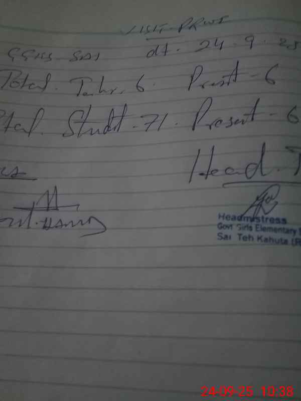 | District: RAWALPINDI | Tehsil: KAHUTA | Markaz: DAKHALI - FEMALE | Level: Middle | |