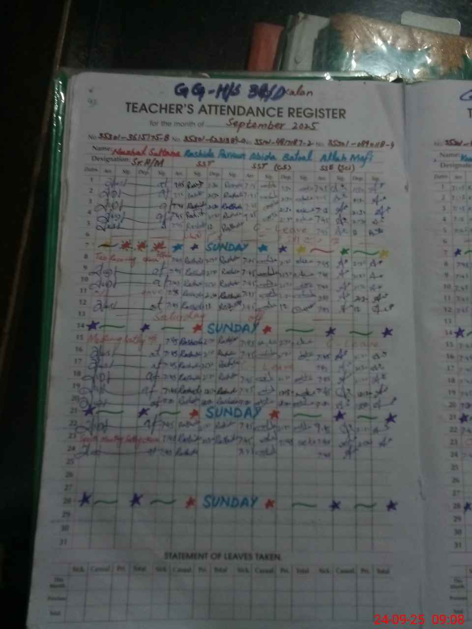 | Leave | Duty | Absent | Maternity | Medical | Ex- Pak |