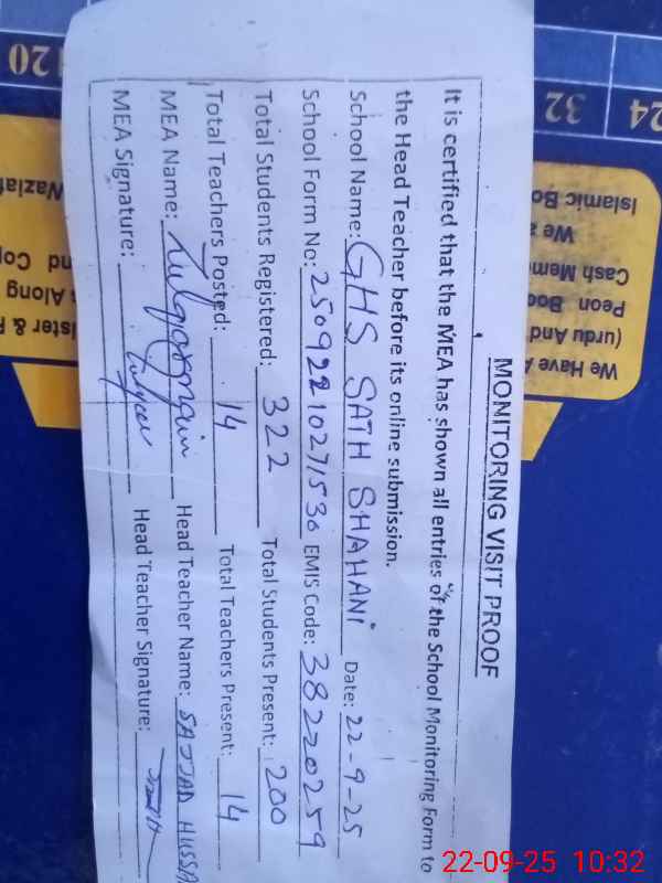 | EMIS Code: 38220259 | Name of School: GHS SATH SHAHANI | |||