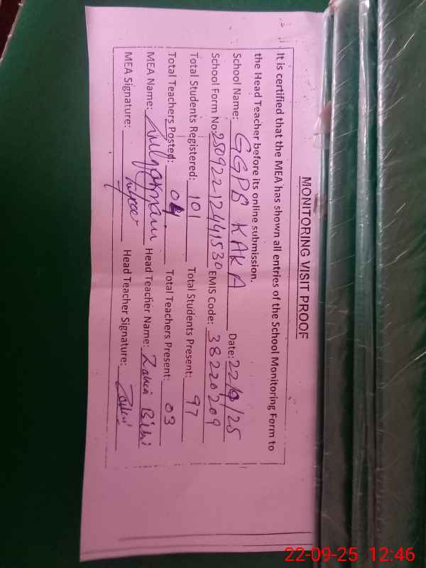 | EMIS Code: 38220209 | Name of School: GGPS KAKA | |||