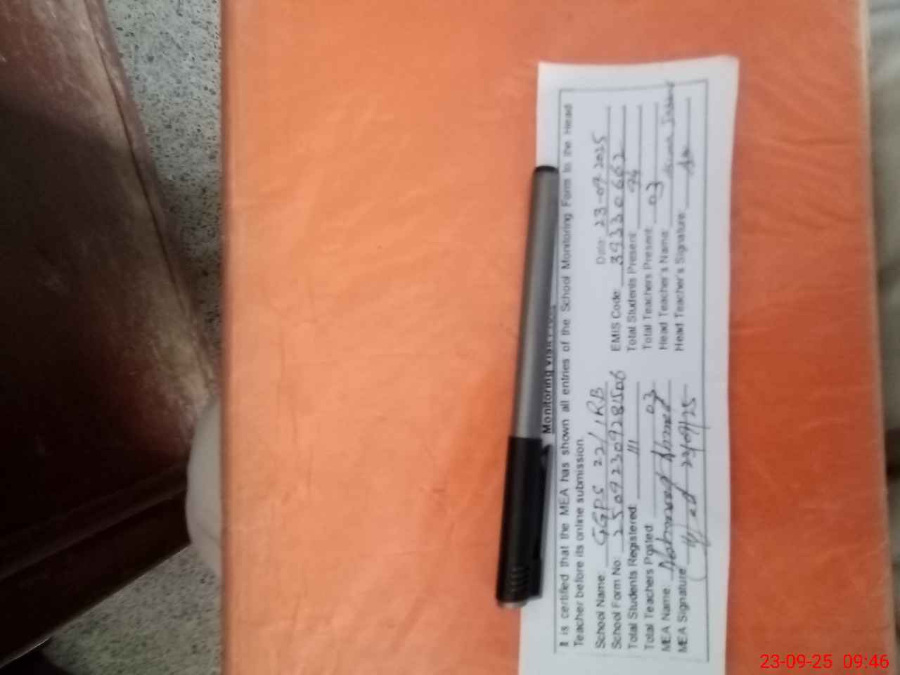 | Attendance Register | Head Teacher | MEA with School | Visit Proof |