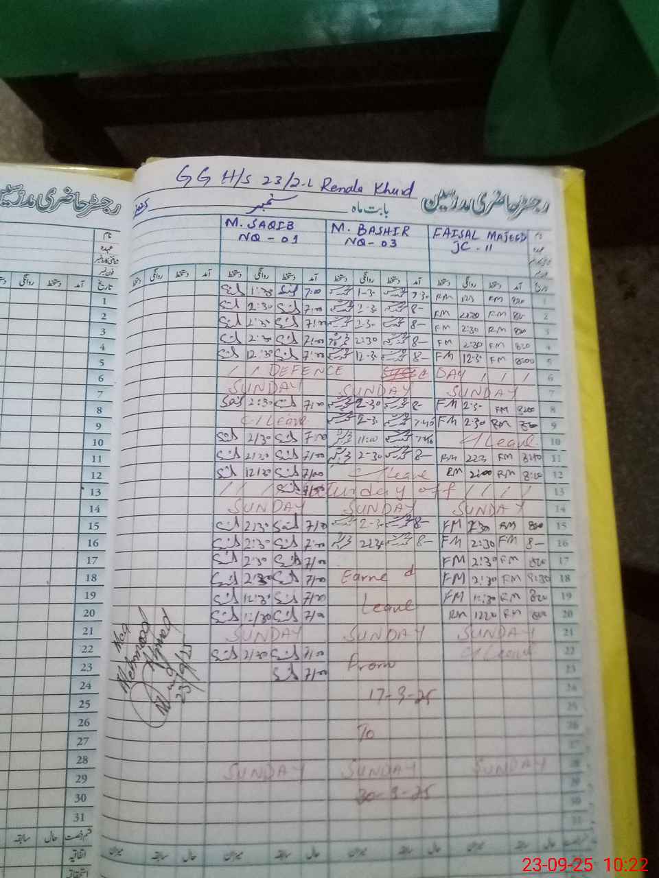| CNIC | Full Name | Designation | R/C | Absence During Last Calender Month |