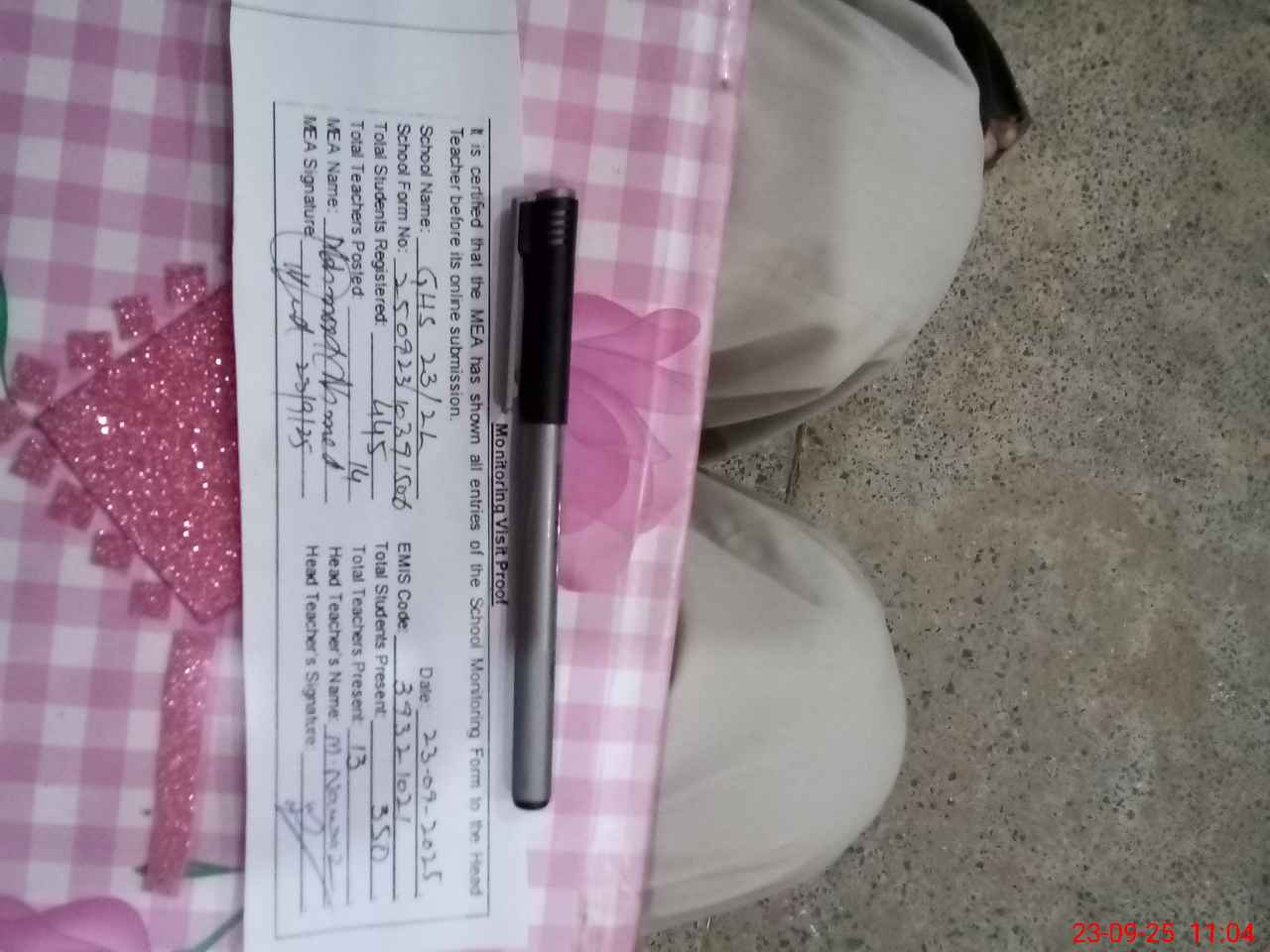 | Attendance Register | Head Teacher | MEA with School | Visit Proof |