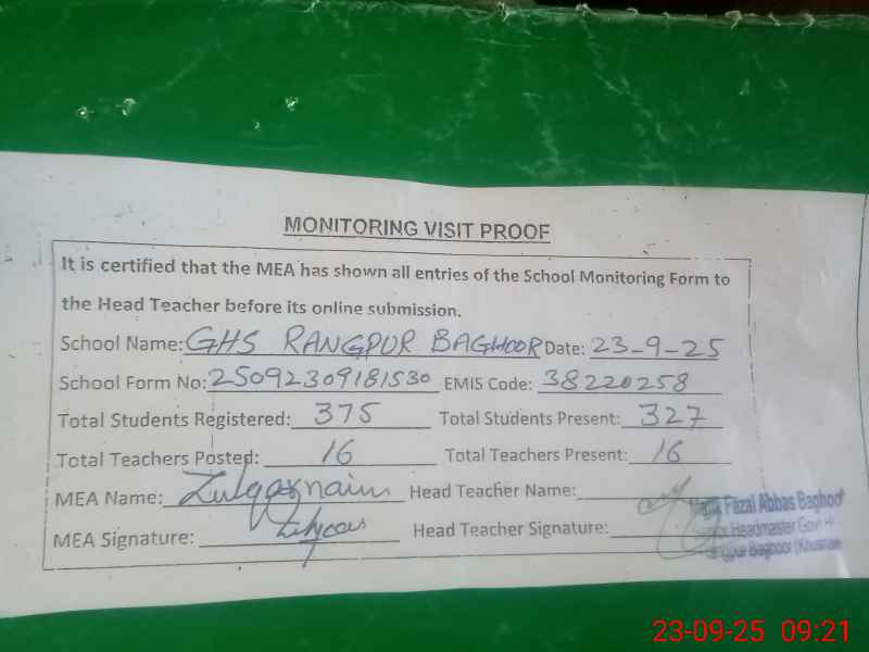 | EMIS Code: 38220258 | Name of School: GHS RANGPUR BAGHOOR | |||