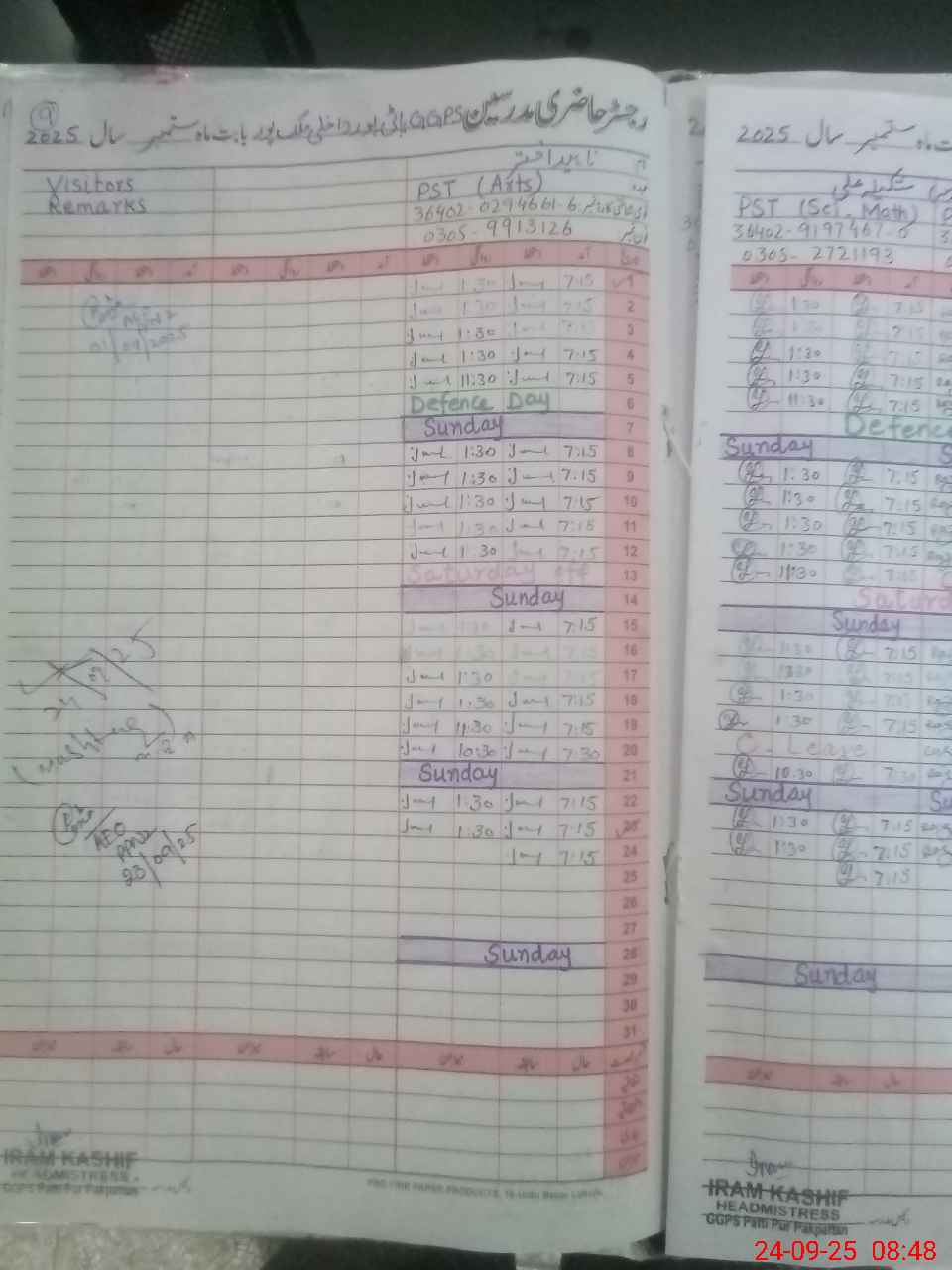 | Name: Ir**** Ka**** Designation: (School Headmaster's/Headmistress's) PST Phone/Cell Number: 03**** |