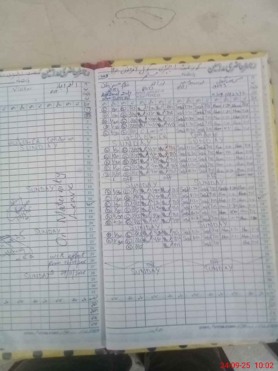 | Leave | Duty | Absent | Maternity | Medical | Ex- Pak |