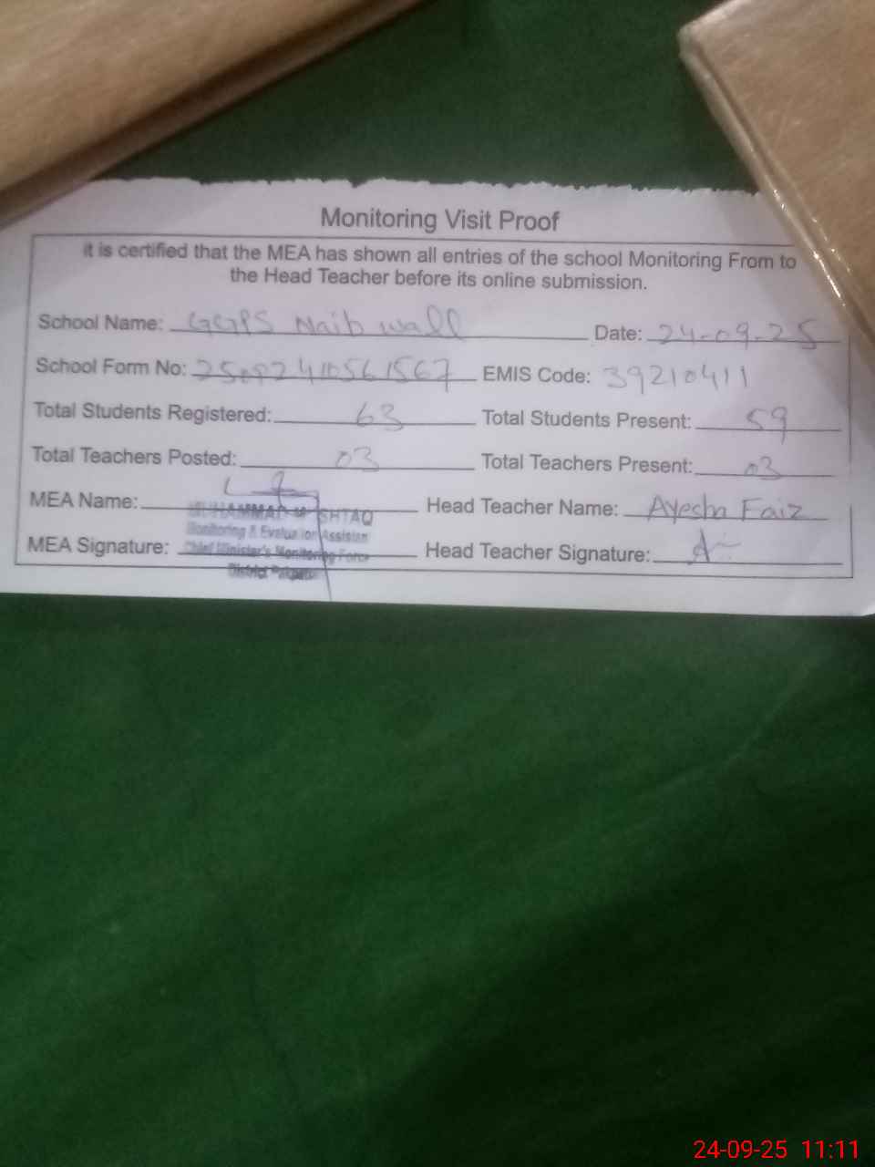 | EMIS Code: 39210411 | Name of School: GGPS NAIB WALL | |||