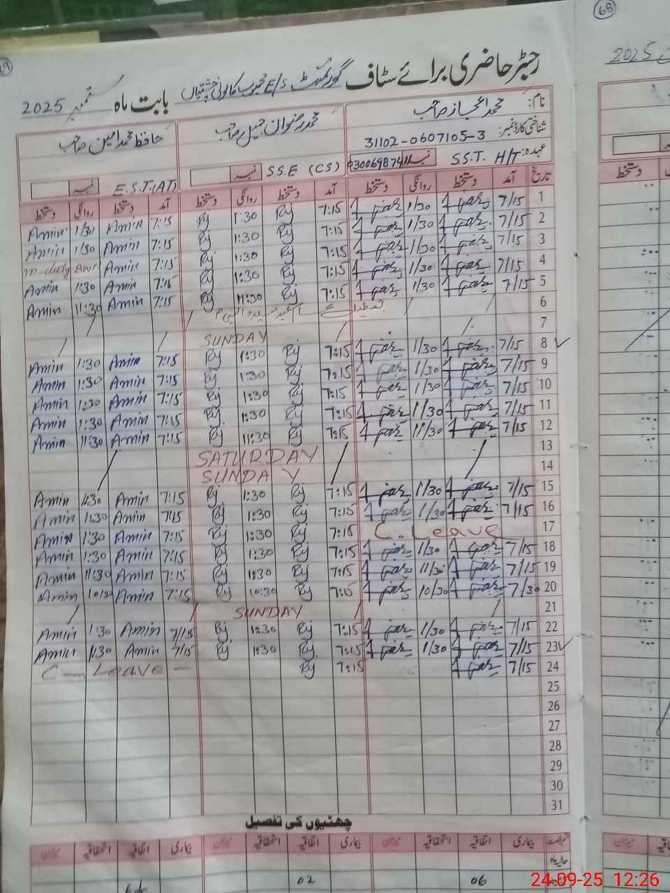 | Name: MU**** IJ**** Designation: (School Headmaster's/Headmistress's) SST GENERAL Phone/Cell Number: 03**** |