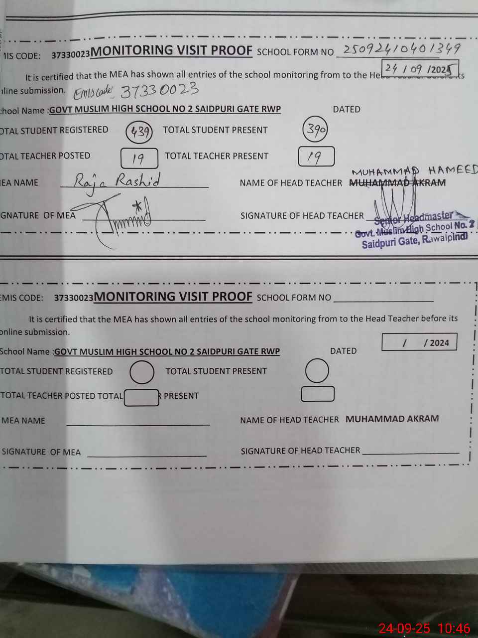 | EMIS Code: 37330023 | Name of School: GHS MUSLIM NO.2 SAIDPURI GATE RAWALPINDI | |||