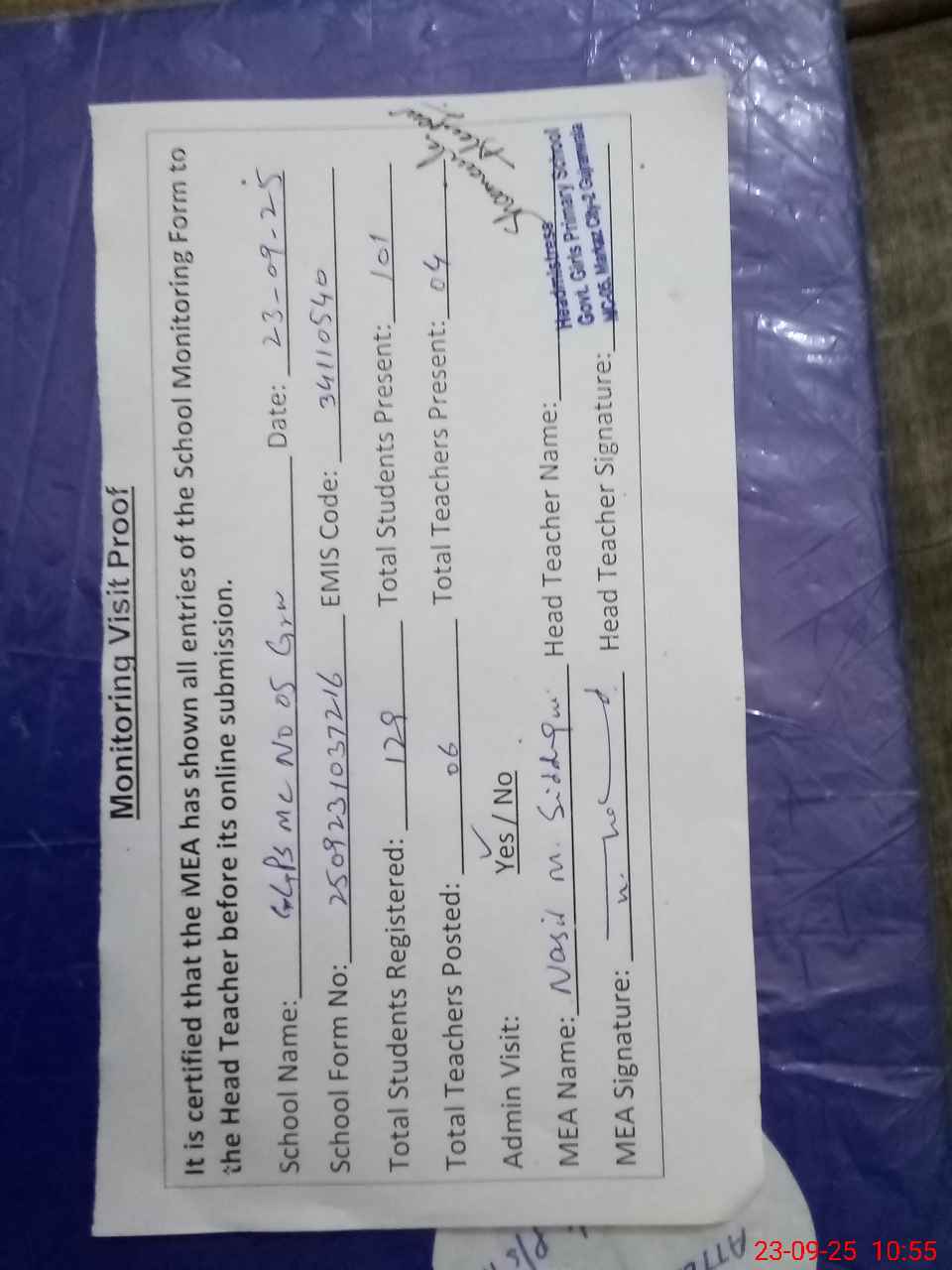 | EMIS Code: 34110540 | Name of School: GGPS MC NO.05 GUJRANWALA | |||